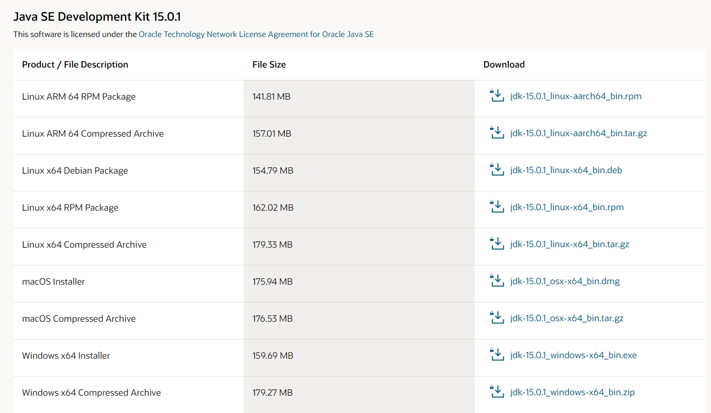 다음 페이지 넘어가시면 옛날 버전부터 해서 최신 버전까지 있습니다. 자신이 다운받고 싶은 버전애서 JDK Download