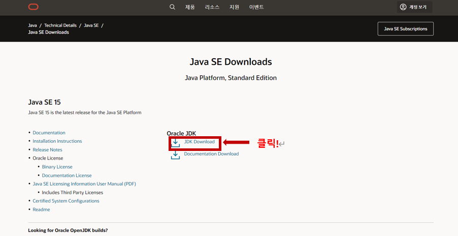 오라클 홈페이지 링크 : www.oracle.com/kr/index.html