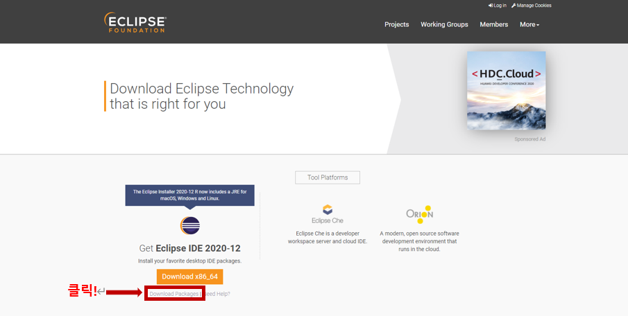 이클립스 다운 링크 : www.eclipse.org/downloads/
