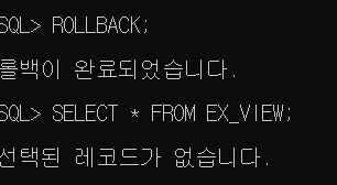 이는 평소에 V_EMP VIEW에는 아무런 데이터가 없다는 뜻이다. 따라서 이 VIEW에는 제약 조건이나 인덱스 등을 생성할 수 없다.