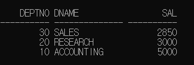 SELECT E.DEPTNO, D.DNAME, E.SAL